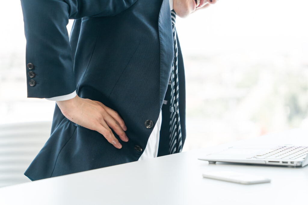 デスクワーク中心の生活では体幹や背筋が弱まり、猫背や骨盤の歪みが進行。
